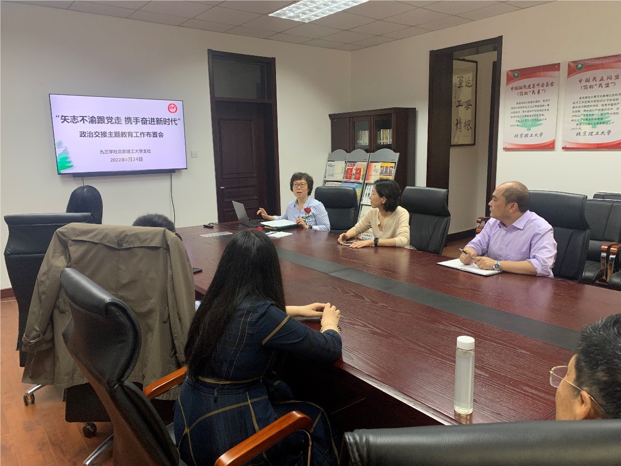 2022年4月25日下午,九三学社北理工支社在校统战部会议室召开“矢志不渝跟党走 携手奋进新时代” 政治交接主题教育工作布置会,在校的十余位社员参加了会议。