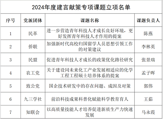 附:2024年度建言献策专项课题立项名单