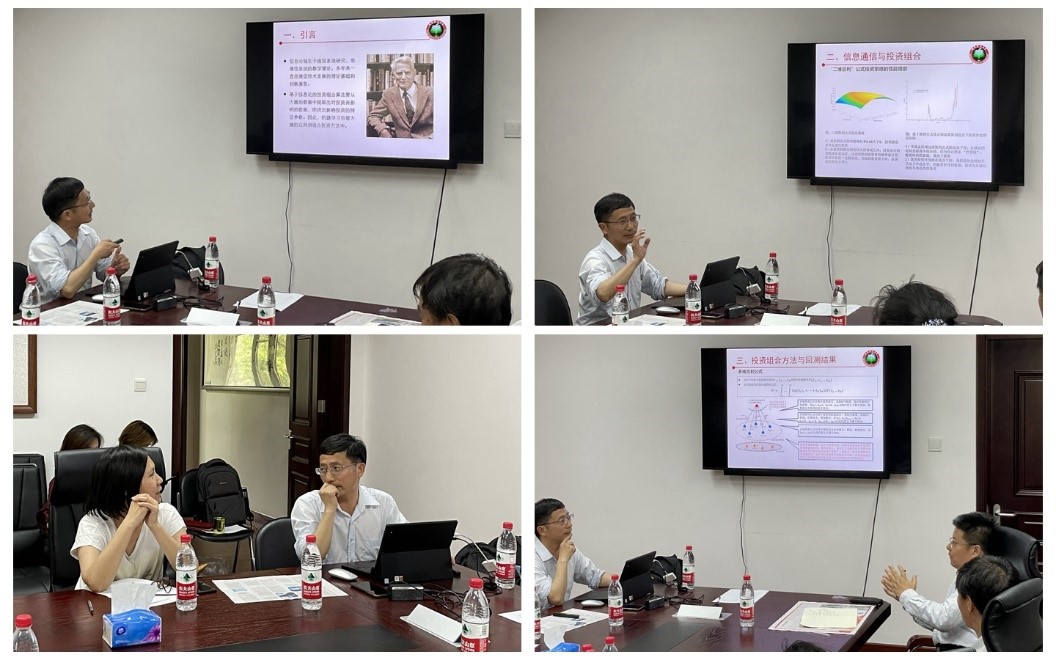 讲座伊始,李教授以著名科学家香农、索普和凯利的真实事例为引言,通过将信息通信技术中的多信道、信号分集、噪声与干扰、信噪比最大化与投资领域的多标、资金分散、政策情绪等的影响、夏普比率和信息比率最大化等进行对比,揭示了信息通信与投资组合本质上的联系。他介绍了信息论应用于投资组合方面的研究进展,重点介绍了基于信息论多维凯利公式的投资组合方法,并通过回测结果和实盘运行情况展示了基于信息论所构造的投资组合方法的优异性能。与会人员对信息论在投资领域的应用表现出浓厚的兴趣,并开展了热烈的互动交流。