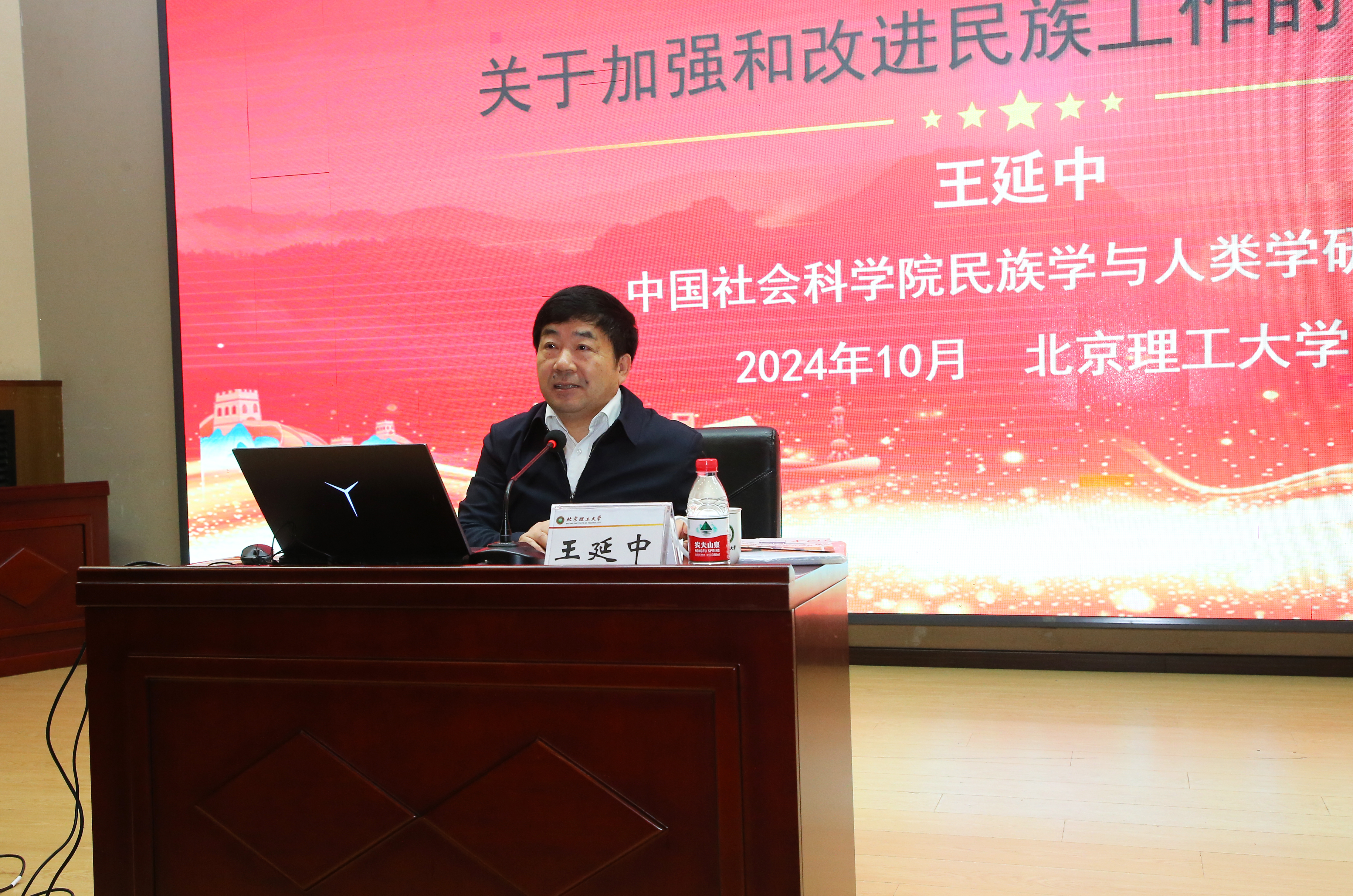为深入学习贯彻习近平总书记关于加强和改进民族工作的重要思想,贯彻落实党的二十届三中全会精神,推动铸牢中华民族共同体意识教育深入开展,10月15日,中国社会科学院民族学与人类学研究所所长、中央四部委铸牢中华民族共同体意识研究基地首席专家王延中教授作题为《学习贯彻落实习近平总书记关于加强和改进民族工作的重要思想》的辅导报告。民族宗教工作领导小组成员单位负责人、各基层党组织书记、各学院(书院、研究院)分管学生工作负责人、辅导员和思政课教师代表参加会议。会议由党委副书记包丽颖主持。