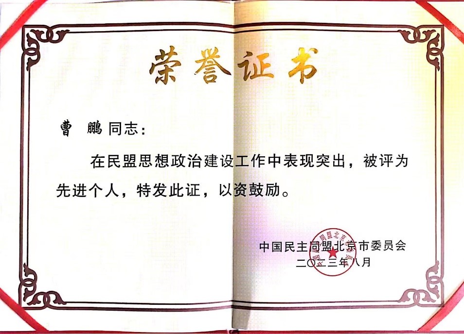 其中,民盟北理工支部委员、betway西汉姆联数学与统计学院副院长曹鹏获评民盟北京市委思想政治建设工作先进个人。