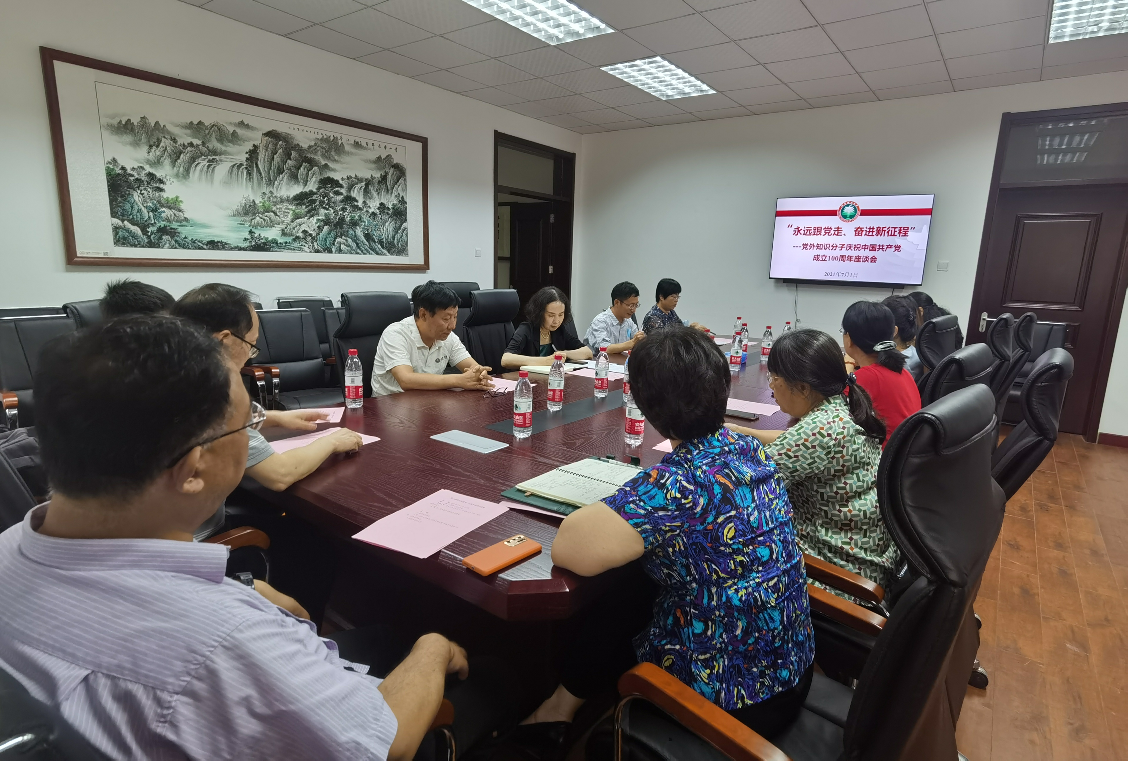 7月1日,为庆祝中国共产党成立100周年,回首党的百年伟大征程,汲取奋进的强大力量,统一思想、凝聚共识、同心同向,携手向第二个百年目标奋勇前行,党委统战部组织召开“永远跟党走、奋进新征程”党外知识分子庆祝中国共产党成立100周年座谈会,各民主党派、统战团体负责人,无党派人士代表、归国留学人员代表参会。会议由党委统战部副部长和霄雯主持。